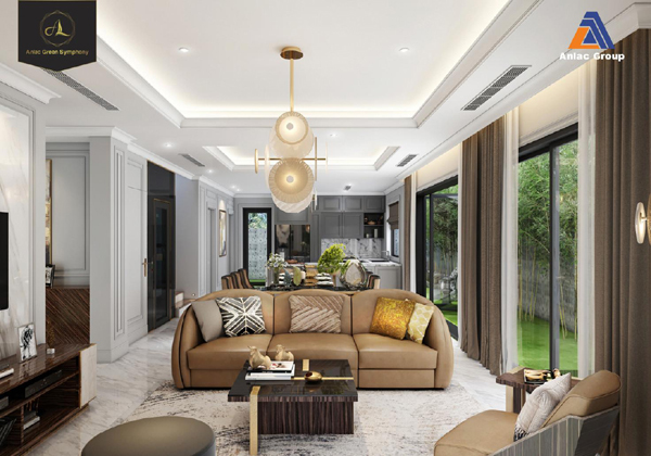 An Lạc Green Symphony đặc biệt là phòng khách của biệt thự được kết nối với cảnh quan bên nhà bằng ô cửa kính khoáng đạt khiến không gian như được mở rộng, hòa nắng đón gió, đưa thiên nhiên vào trong từng hơi thở. Đặt trong sắc xanh chung của toàn khu đô thị, tất cả tạo nên cảm giác gần gũi, hòa mình với thiên nhiên, mang lại sự thư thái làm nên phong cách sống xanh, cân bằng, an lành cho các thành viên trong gia đình.