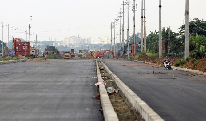 Từ Văn Tiến Dũng đến đường Tây Tựu (70A), đường Tây Thăng Long đã hoàn thành một bên đường và phương tiện có thể di chuyển từ lâu.