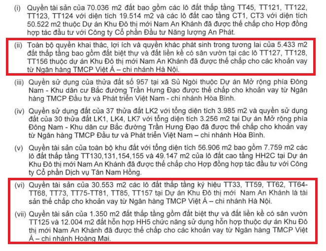 Nhiều hạng mục của dự án Nam An Khánh đang được cấm cố tại Ngân hàng Việt Á. (Nguồn: BCTC hợp nhất năm 2020 của Sudico).