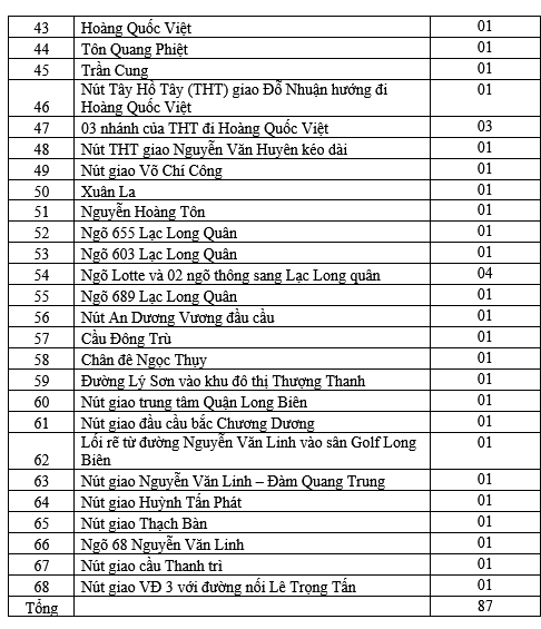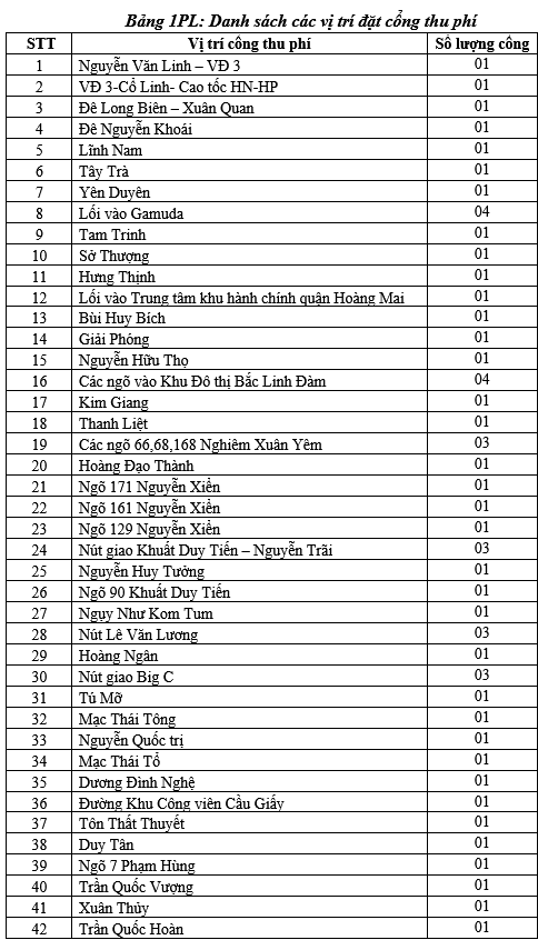 Danh sách vị trí 87 trạm thu phí xe vào nội đô Hà Nội với dự kiến mức thu phí khoảng từ 50.000 đồng đến 100.000 đồng.