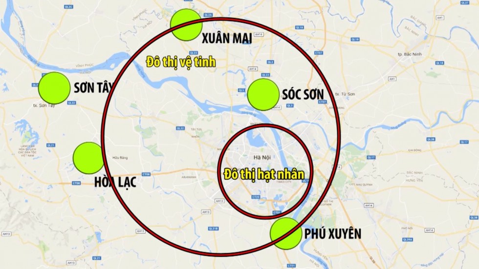 - Trung tâm hành chính, kinh tế, tài chính, du lịch, ngoại giao: Quận Tây Hồ, Quận Nam Từ Liêm, phía Đông Quận Bắc Từ Liêm, phía nam Quận Đông Anh, Quận Hà Đông